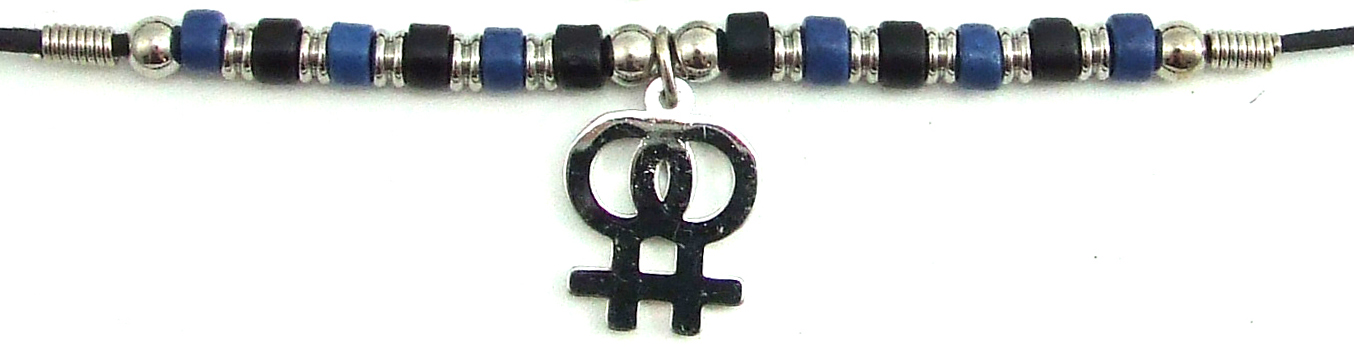 Black & Blue Ceramic Beads with Double Female Charm quantity