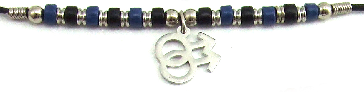 Black & Blue Ceramic Beads with Double Male Charm quantity