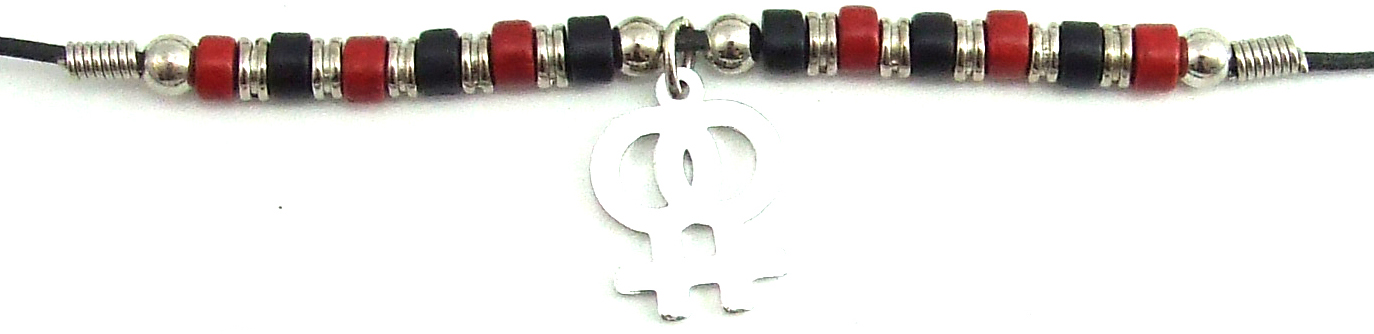 Black & Red Ceramic Beads with Double Female Charm