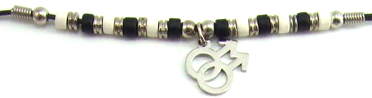 Black & White Ceramic Beads with Double Male Charm