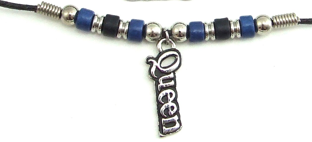 Blue & Black Ceramic Beads with Queen Charm