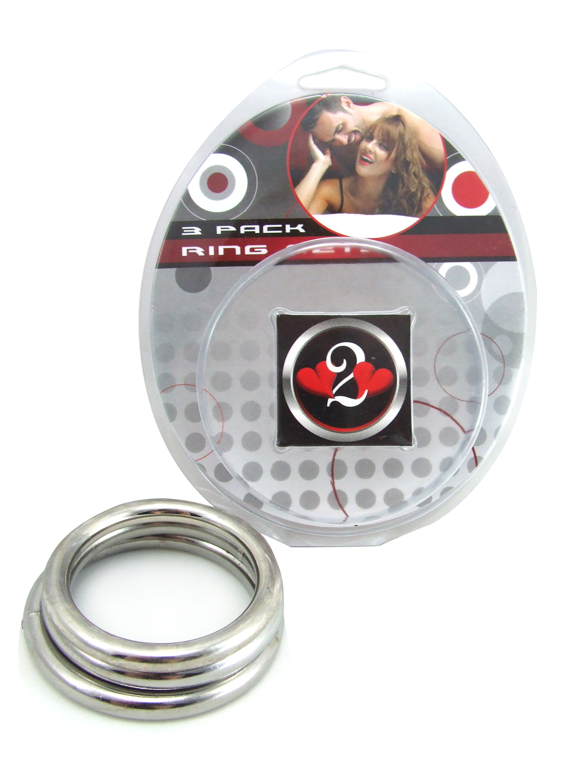 Heart 2 Heart Cock Ring, Metal, 3 Piece Set, Chrome quantity