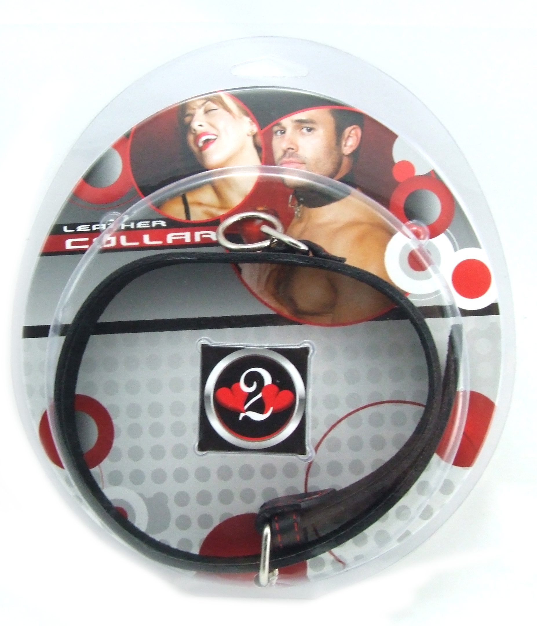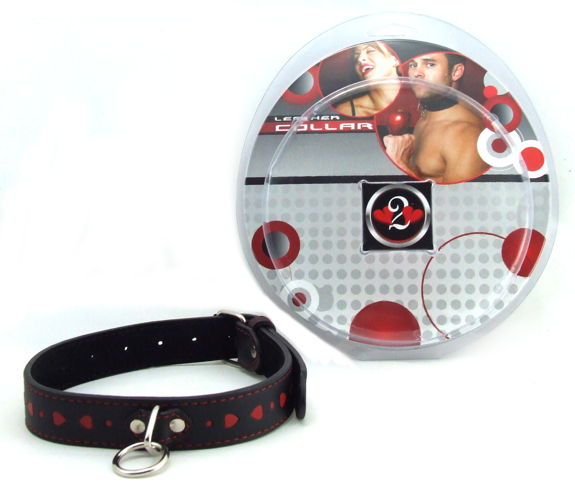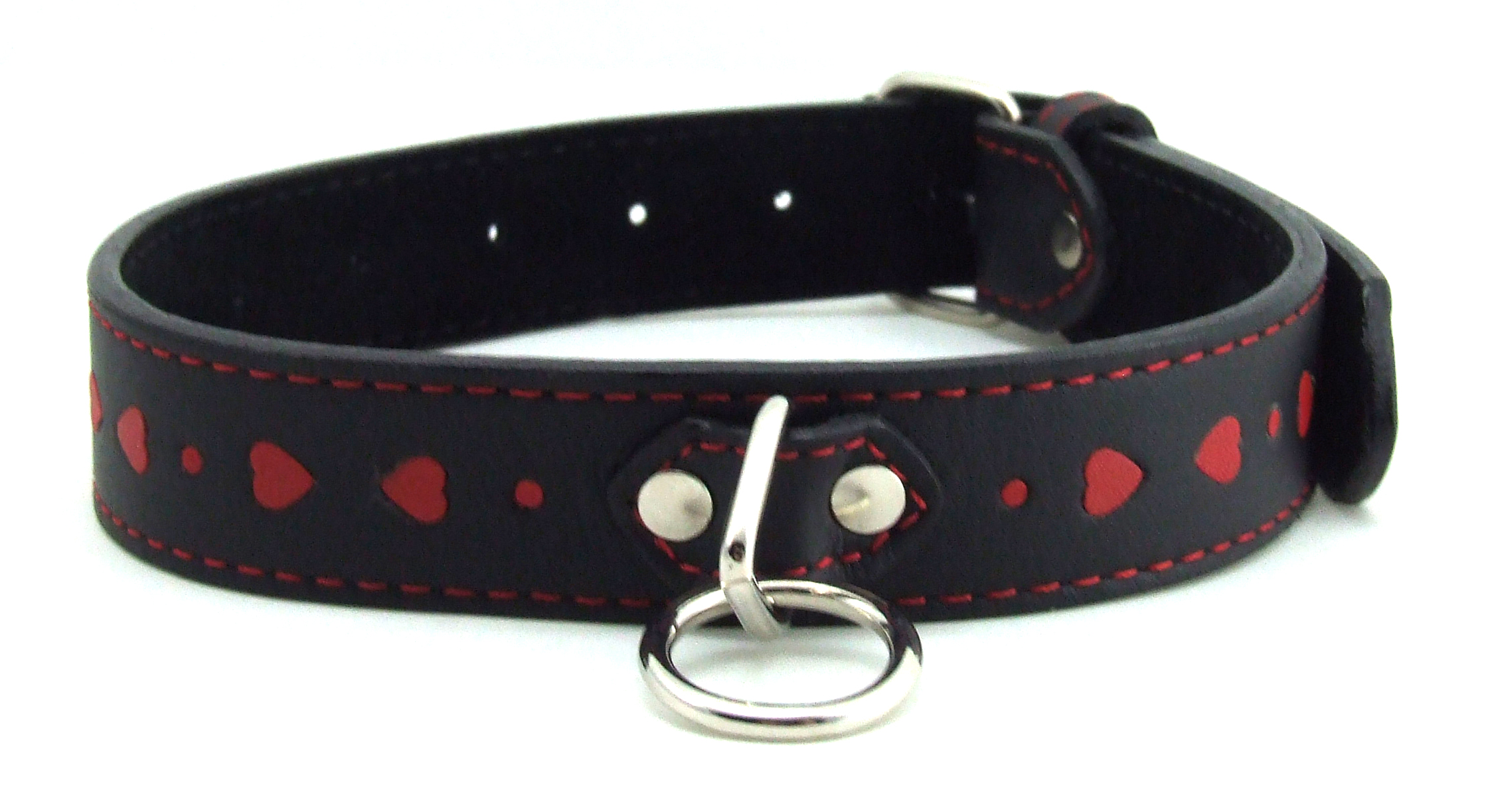 Heart 2 Heart – Collar – Leather with Red Hearts Inlay & D-Ring – Black