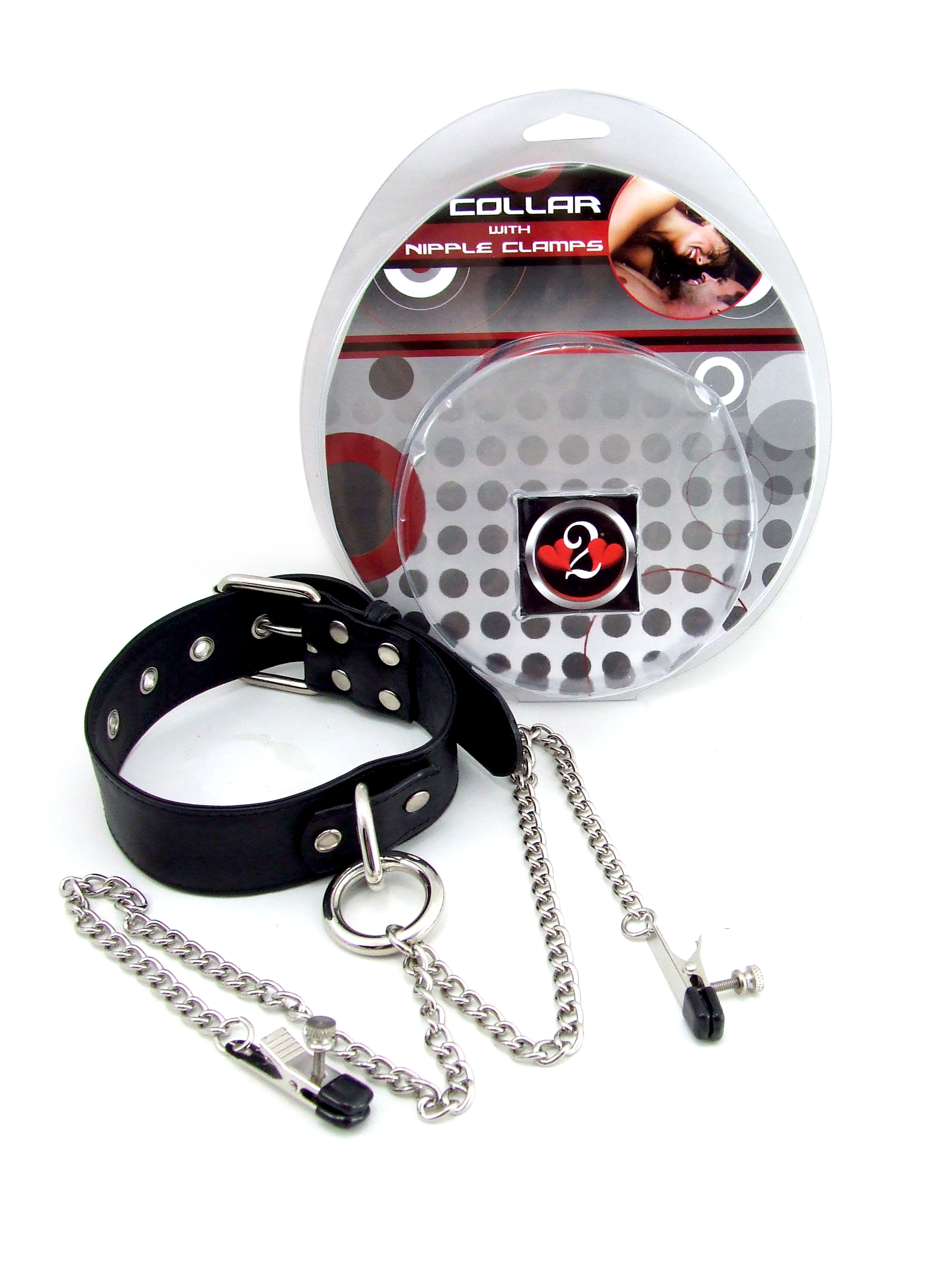 Heart 2 Heart – Collar -Leather- Black with chrome nipple clamps Tweezer