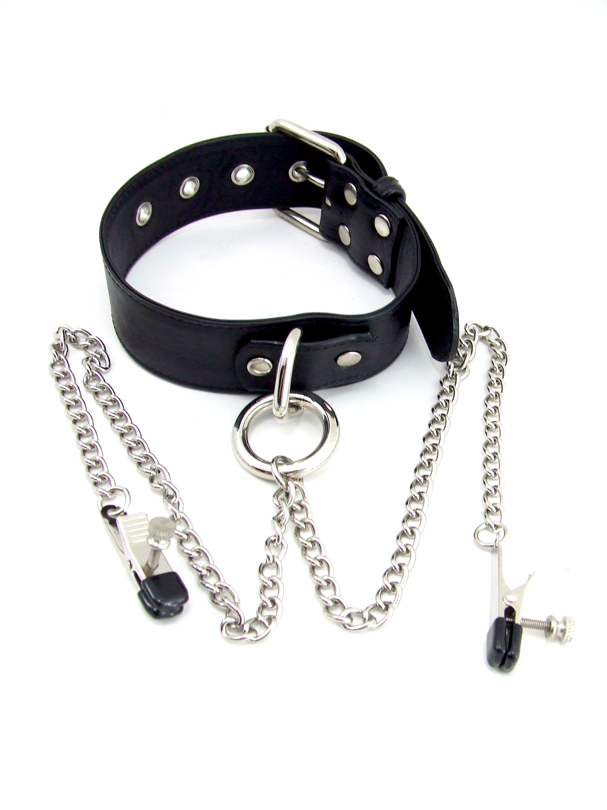Heart 2 Heart – Collar -Leather- Black with chrome nipple clamps Alligator