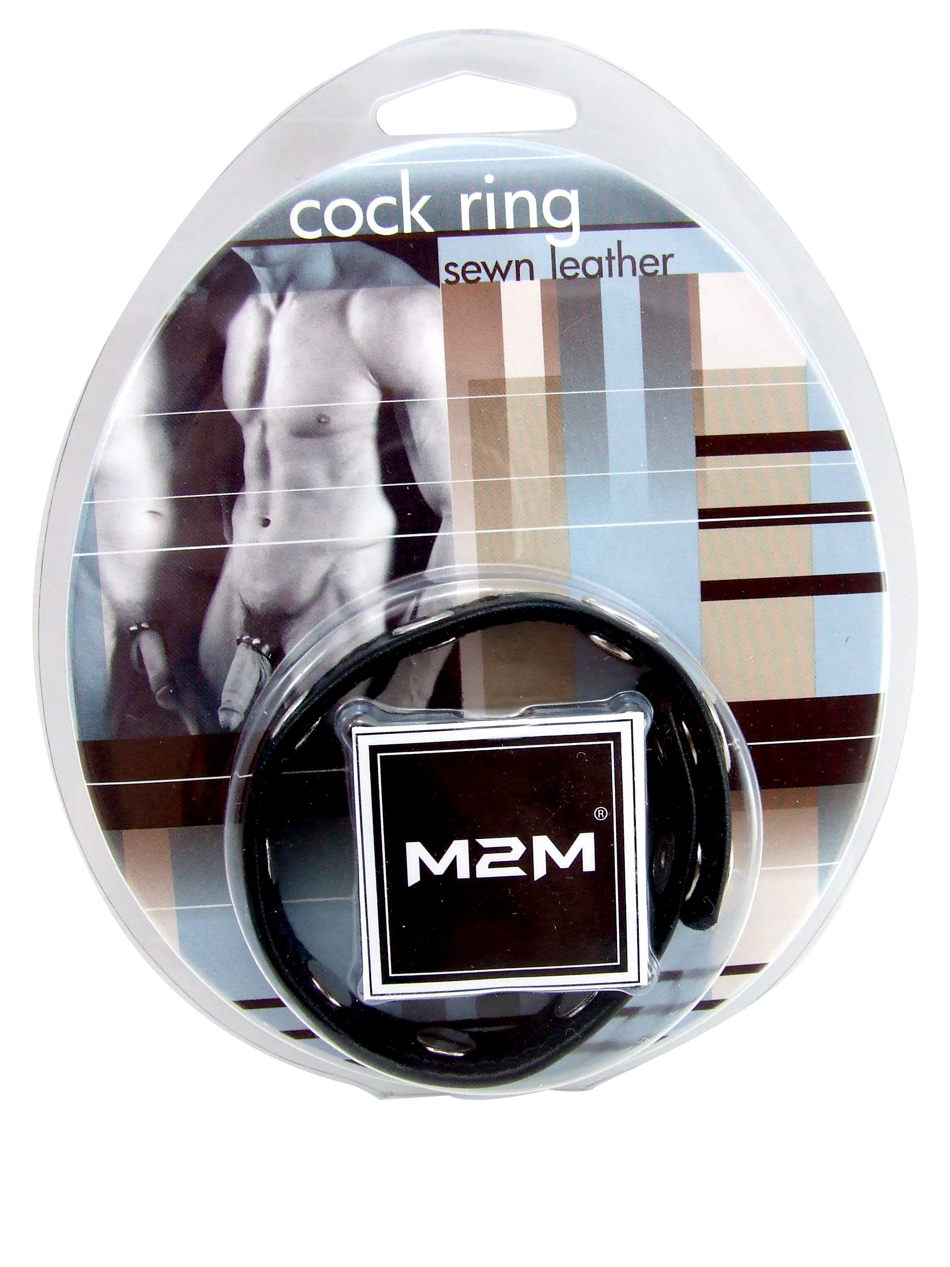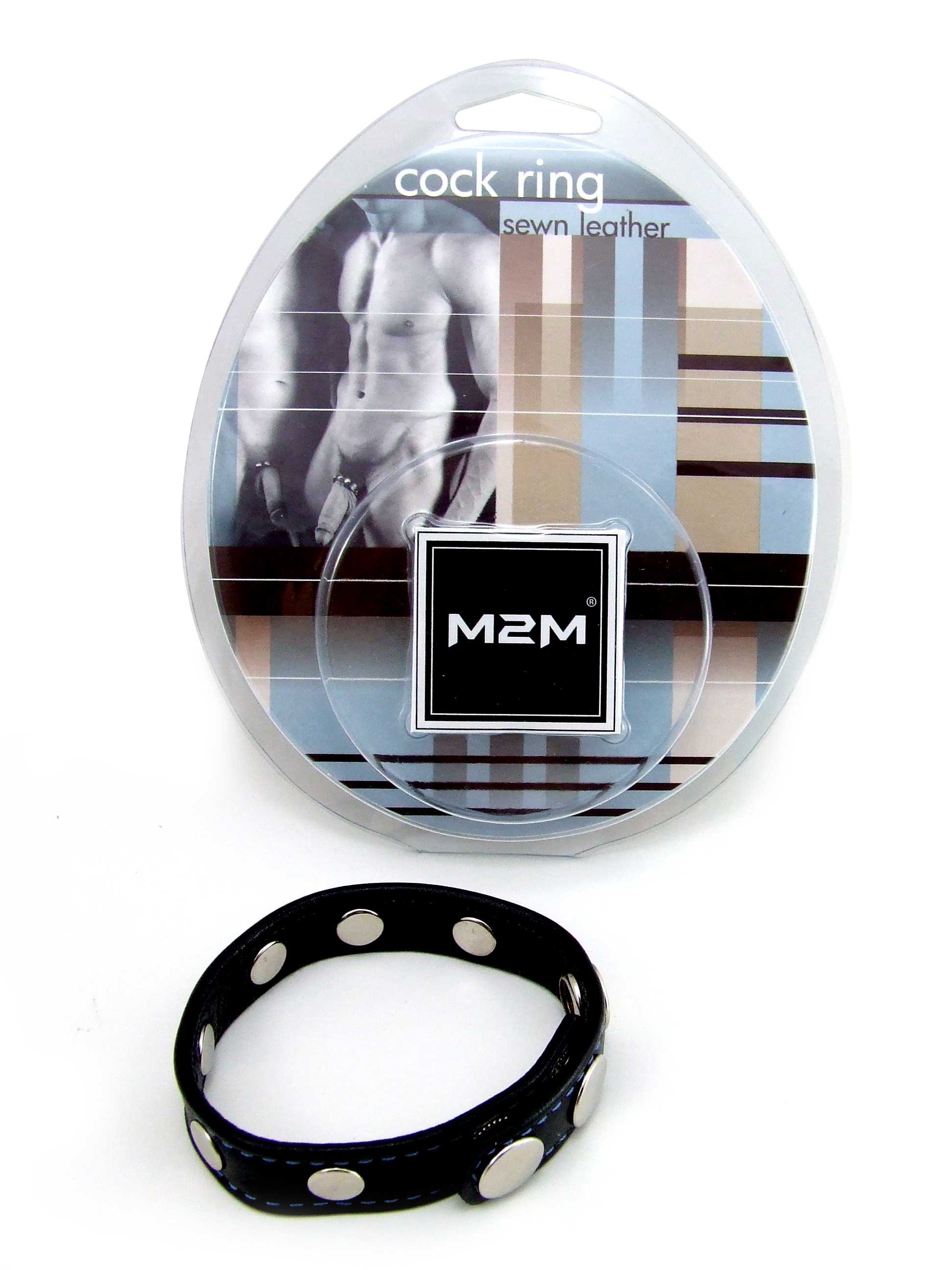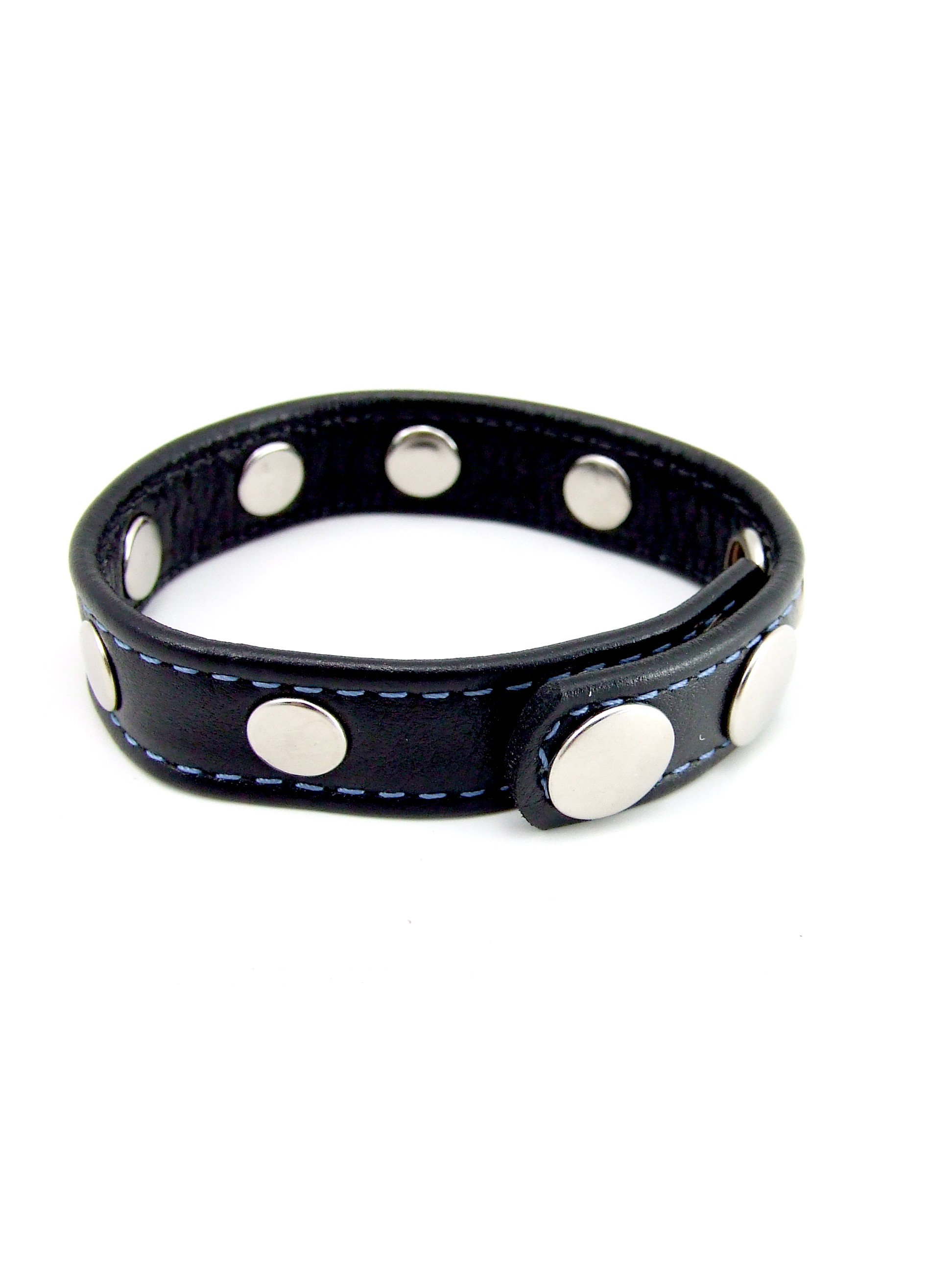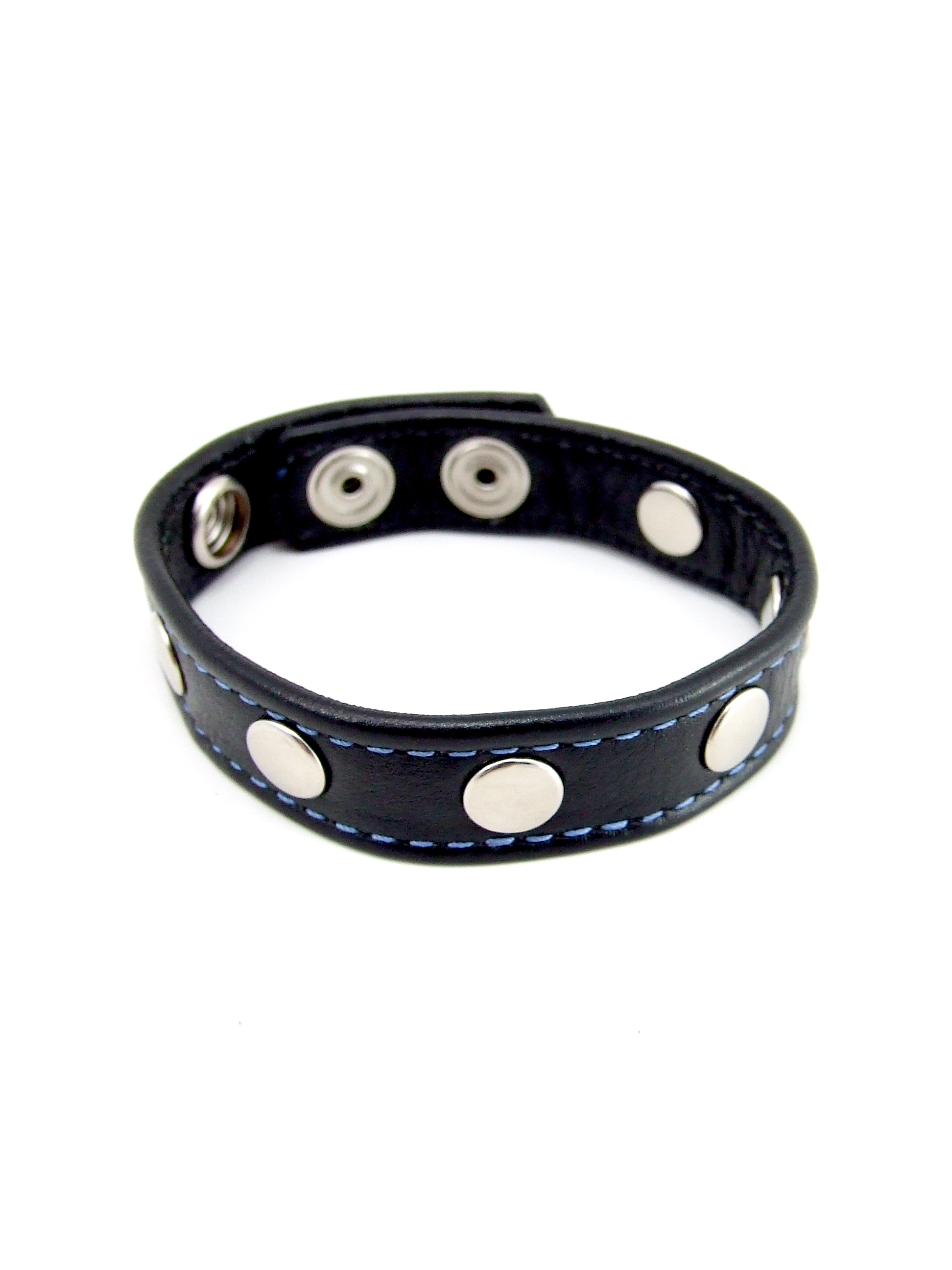 M2M Cock Ring, Leather With Rivets, 2 Snap, Black