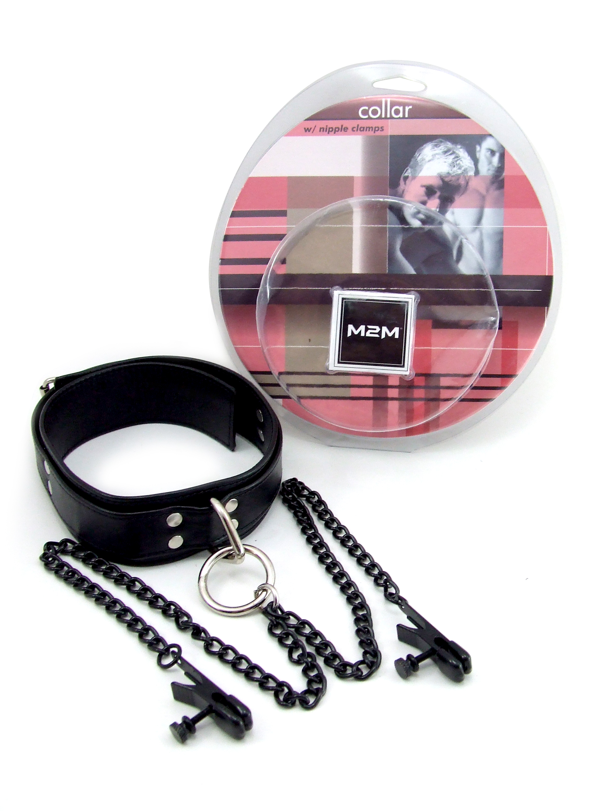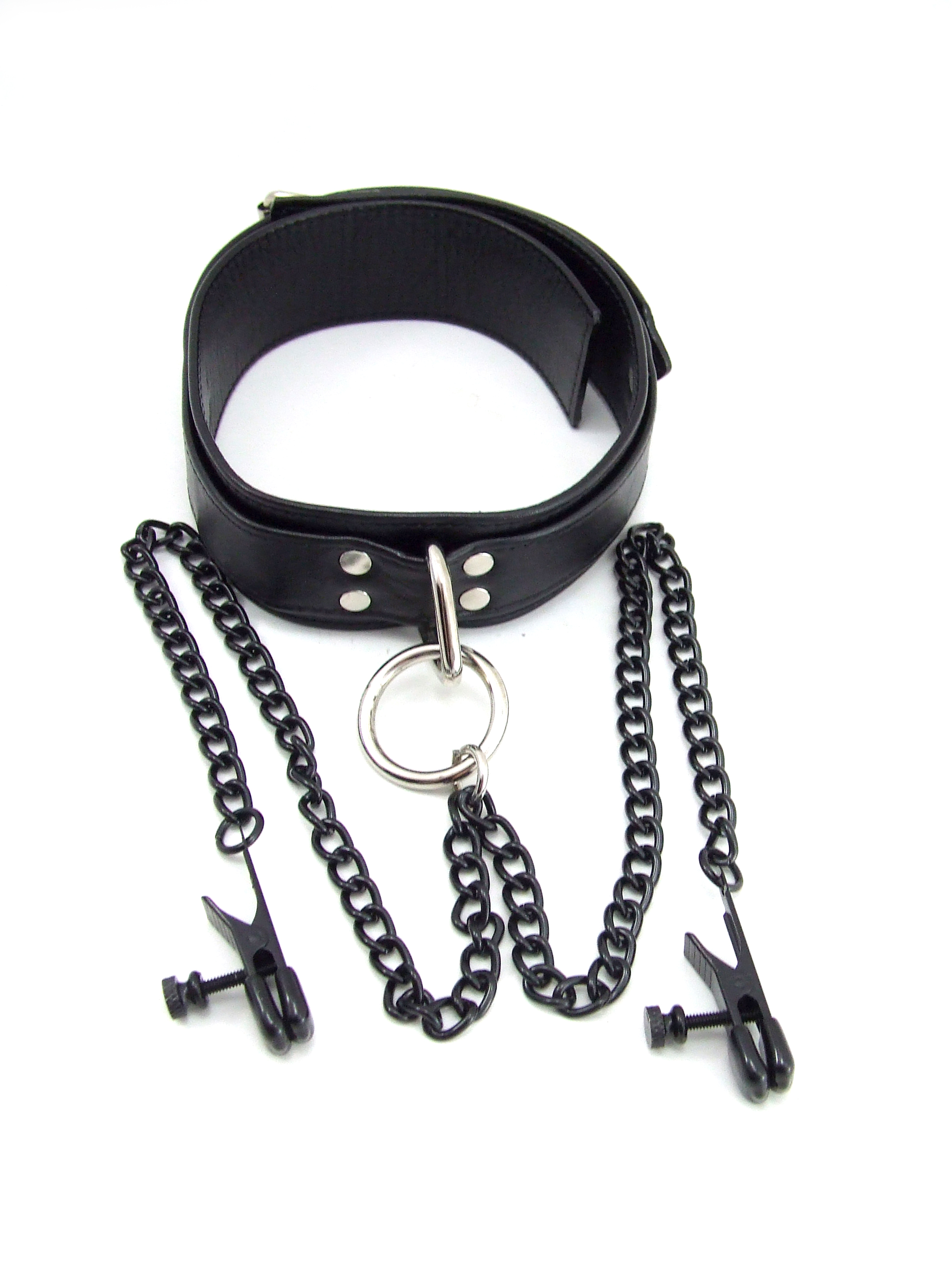 Heart 2 Heart – Collar -Leather- Black with chrome nipple clamps Alligator