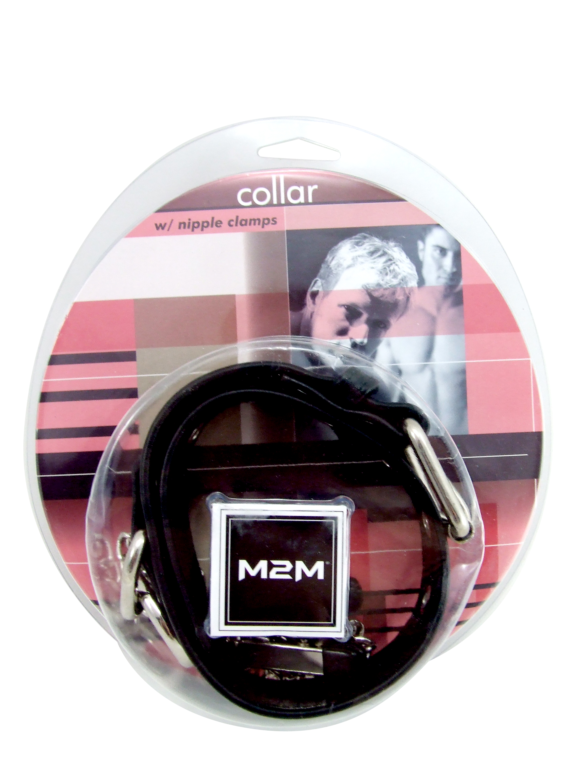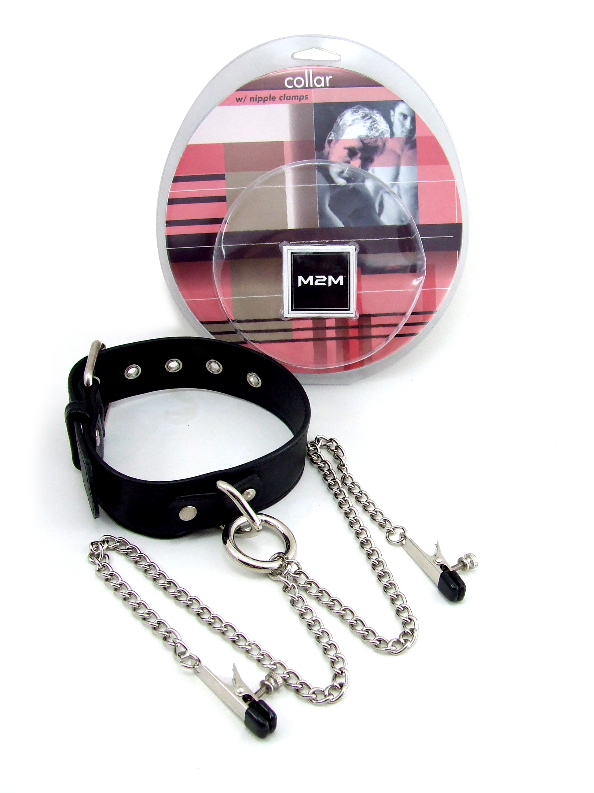 M2M Leather Collar with Chrome Wide Tweezer Clamps
