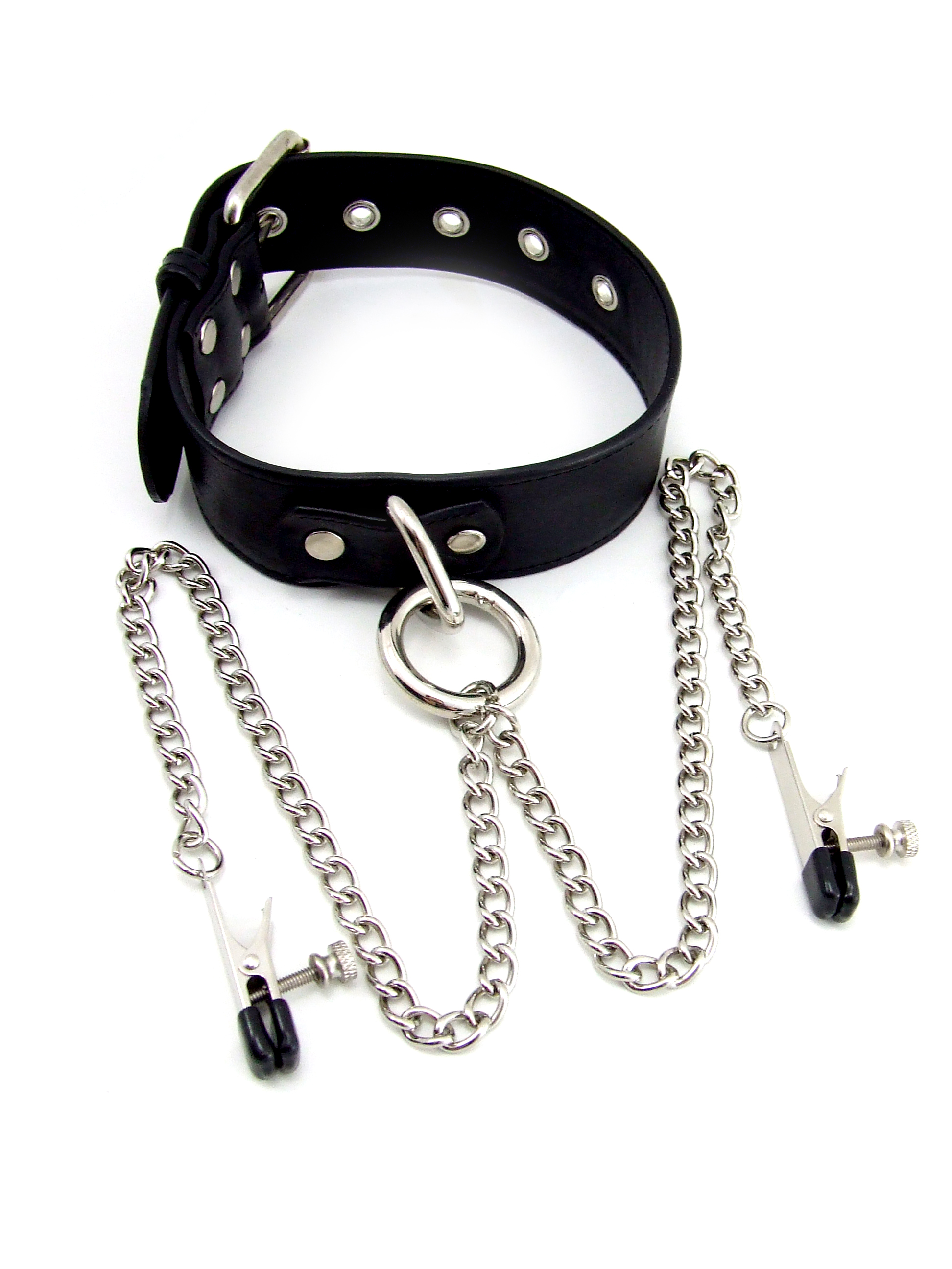 Heart 2 Heart – Collar -Leather- Black with chrome nipple clamps Alligator