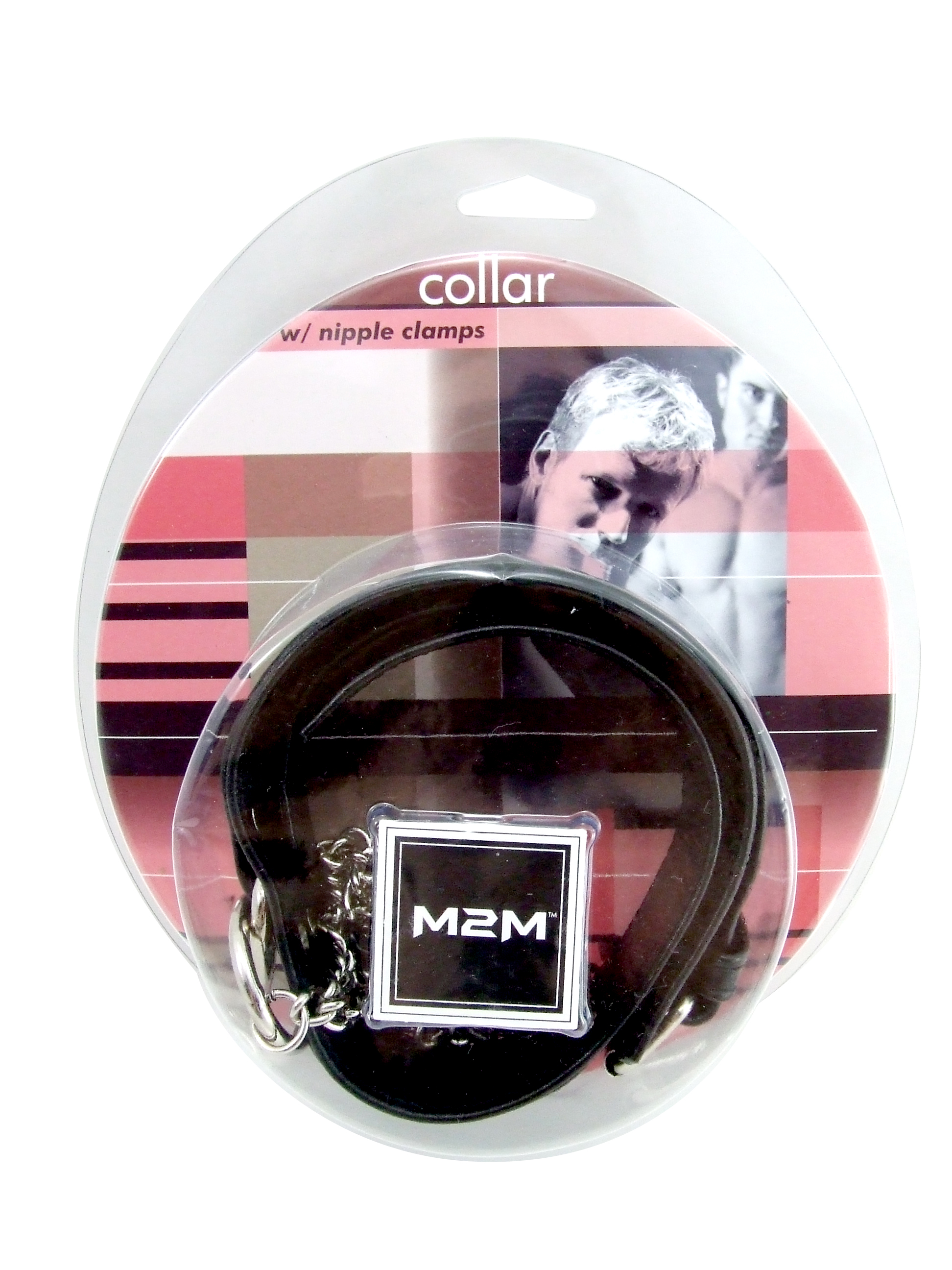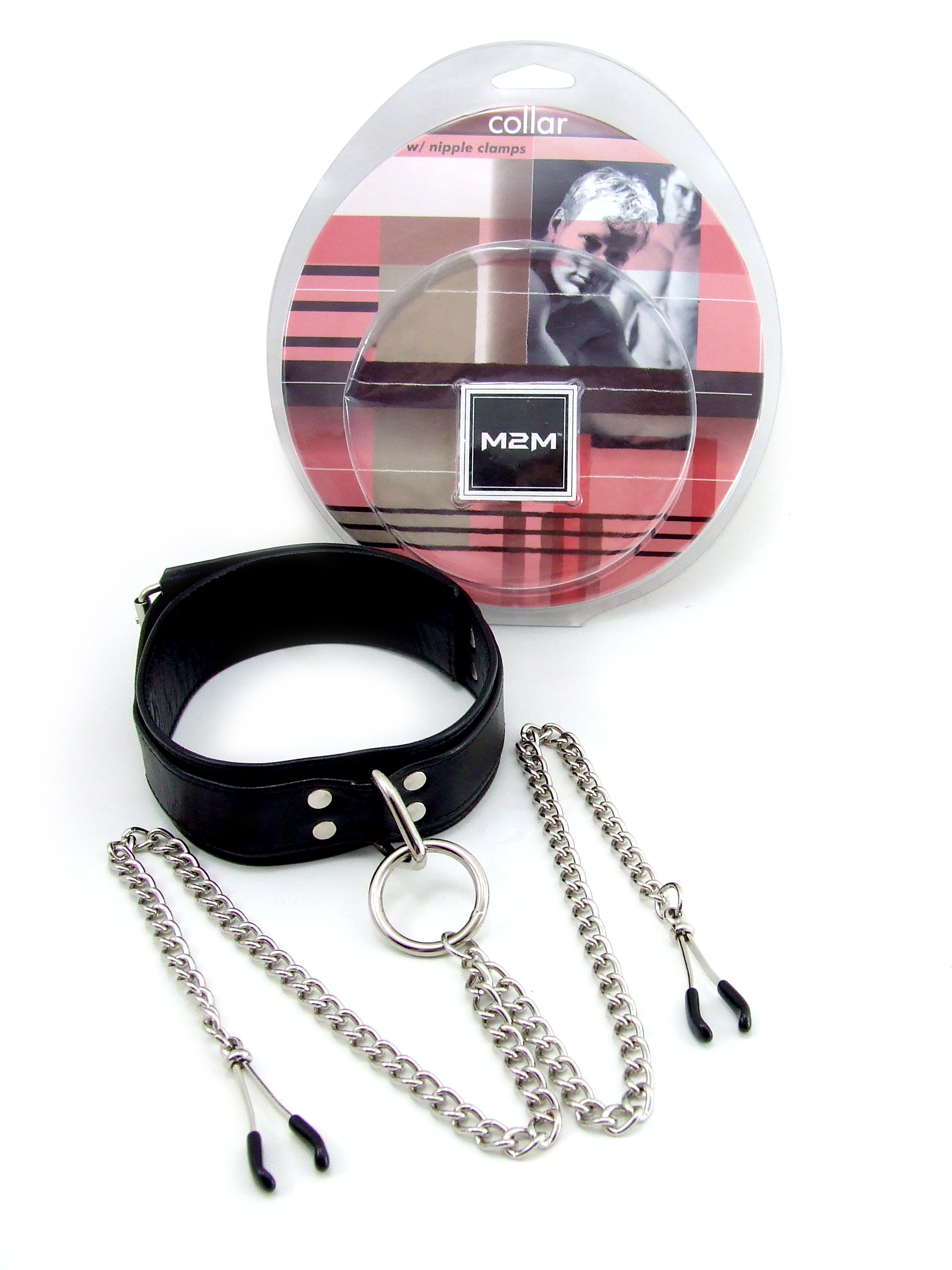 M2M Leather Collar with Chrome Wide Tweezer Clamps