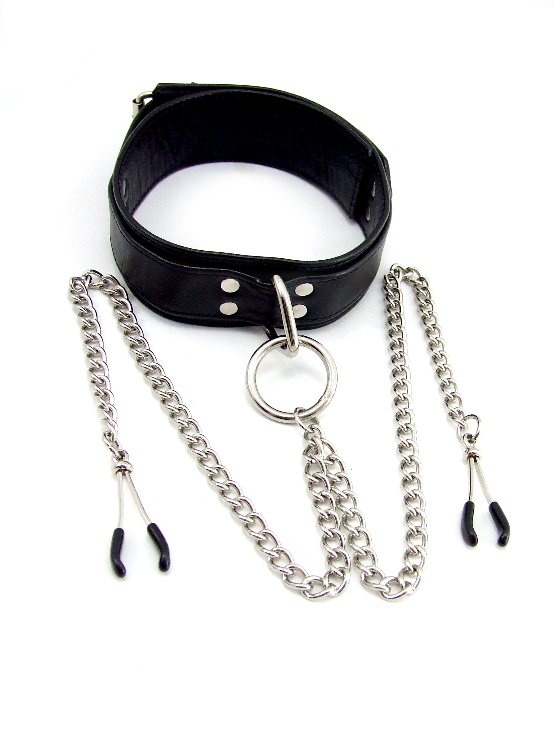 Heart 2 Heart – Collar -Leather- Black with chrome nipple clamps Tweezer