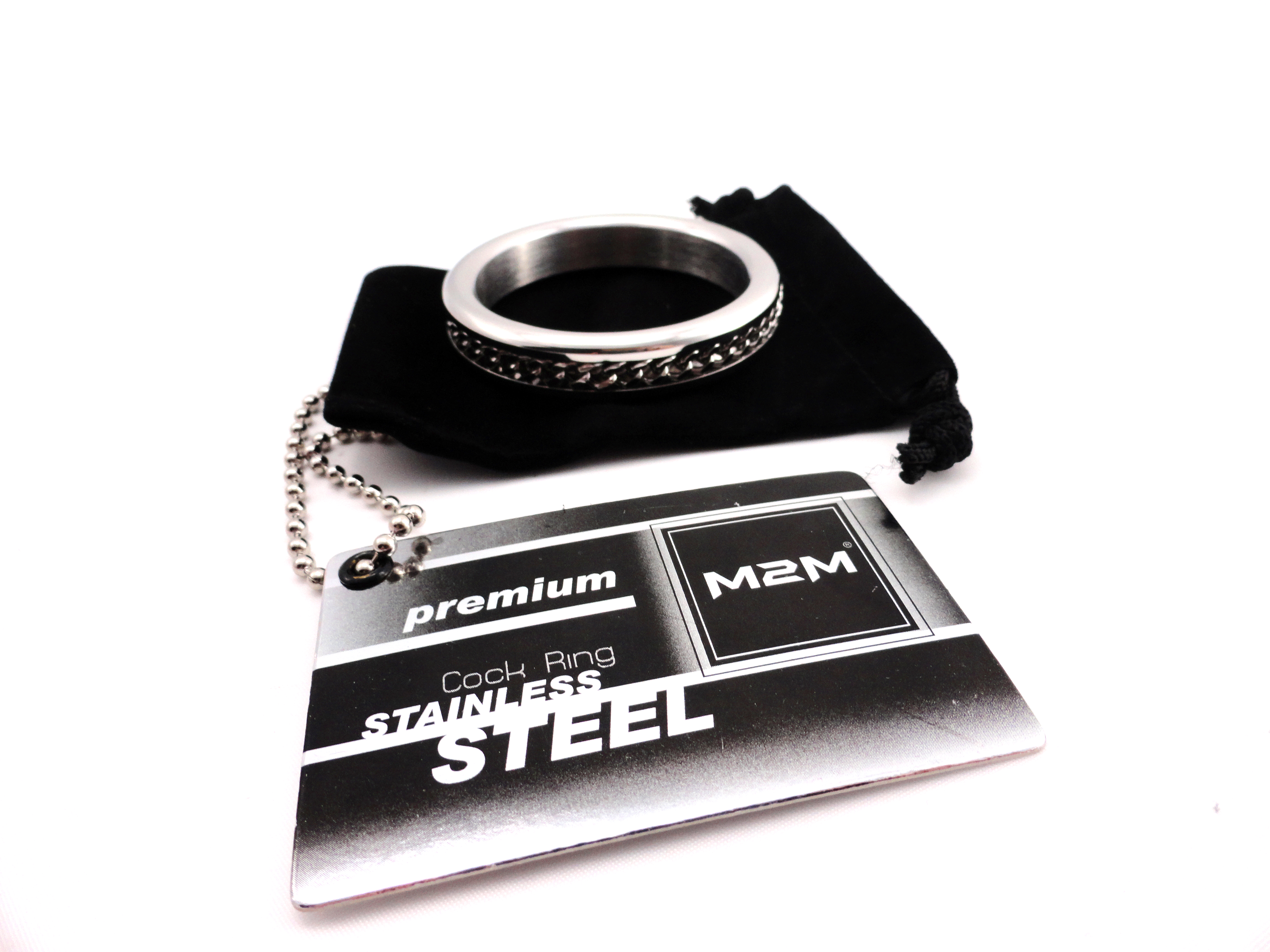 M2M Metal Cock Ring – Chrome with Black Stud Design