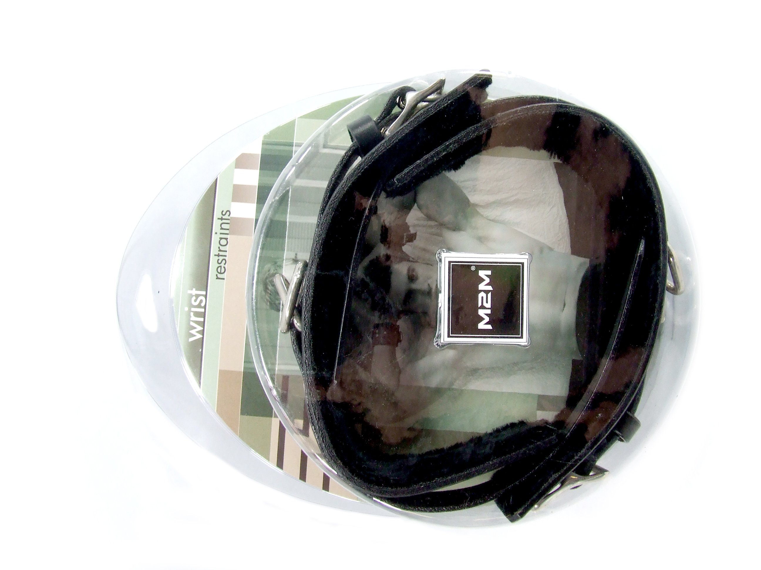 M2M Restraint, Wrist, Leather With Black Fleece, Black