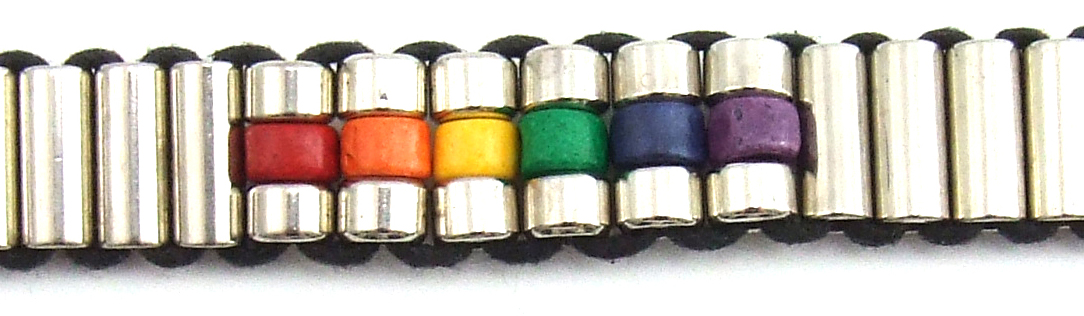 Rainbow Bead Silver Tubes Bracelet 8" quantity