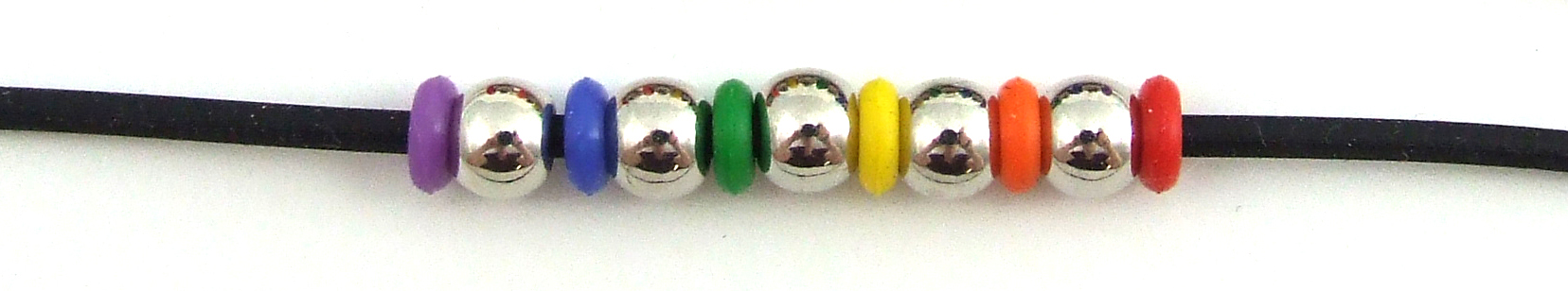 Rainbow Beads & Silver Necklace on Rubber - Black