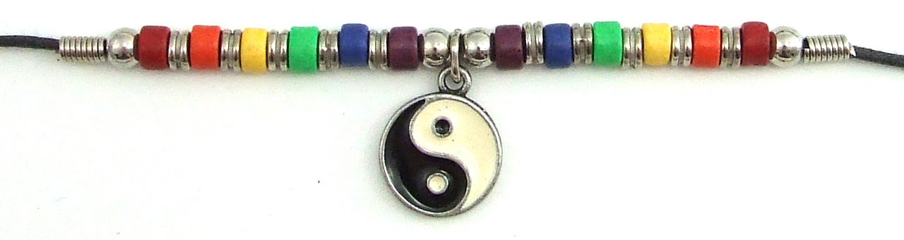 Rainbow cermamic beads with yin yang necklace