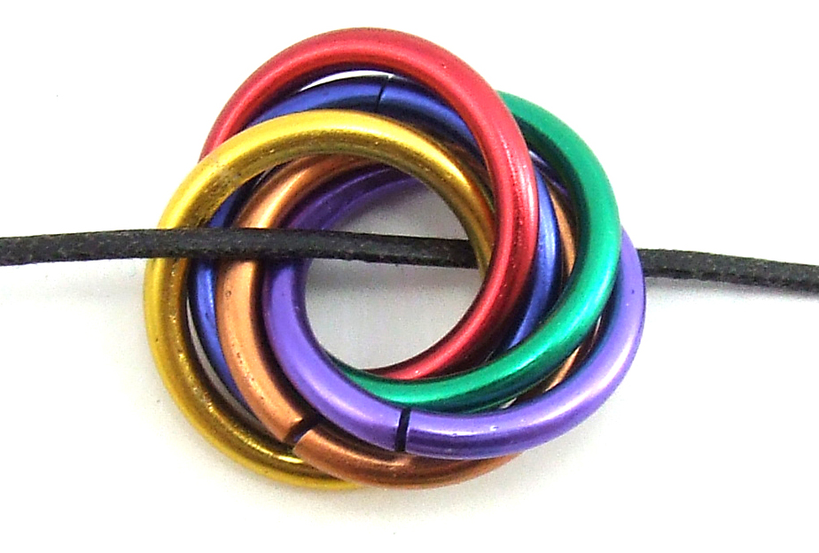 Rainbow Entwined Rings - Black cord Necklace quantity