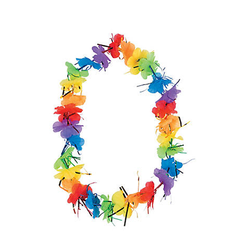 Add a touch of Hawaiian style to your Pride celebration with these colorful rainbow leis accented with shiny tinsel.