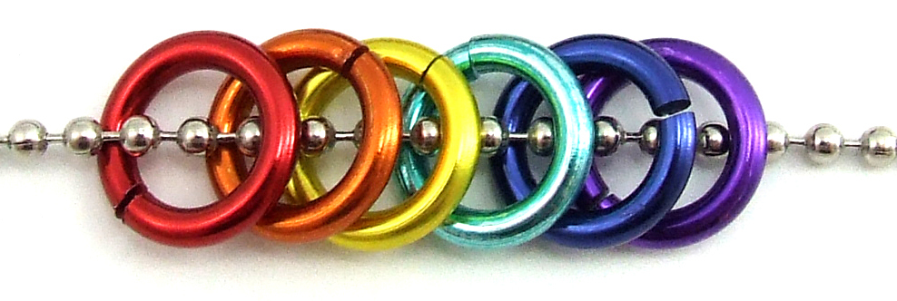 Rainbow Mini Pride Rings on ball chain Necklace