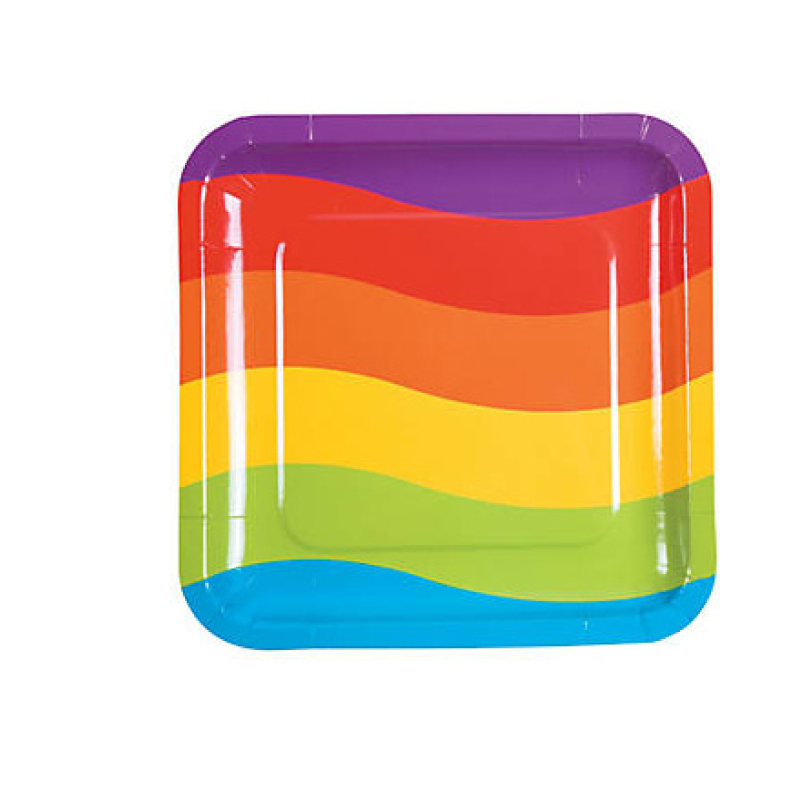 Check out these vibrant 9” rainbow dinner plates. Perfect for your next pride party, get the matching salad/dessert plates, napkins and plastic cups too!