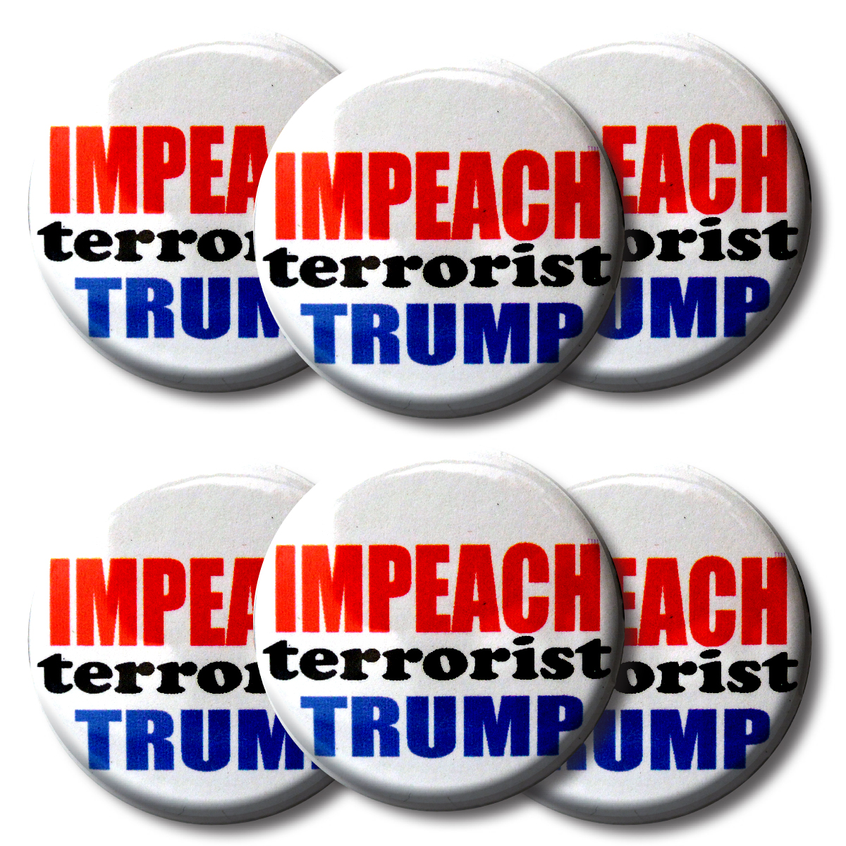 Set IMPEACH terrorist TRUMP buttons (SET OF 6) 1.25” or 3.175cm pin back button