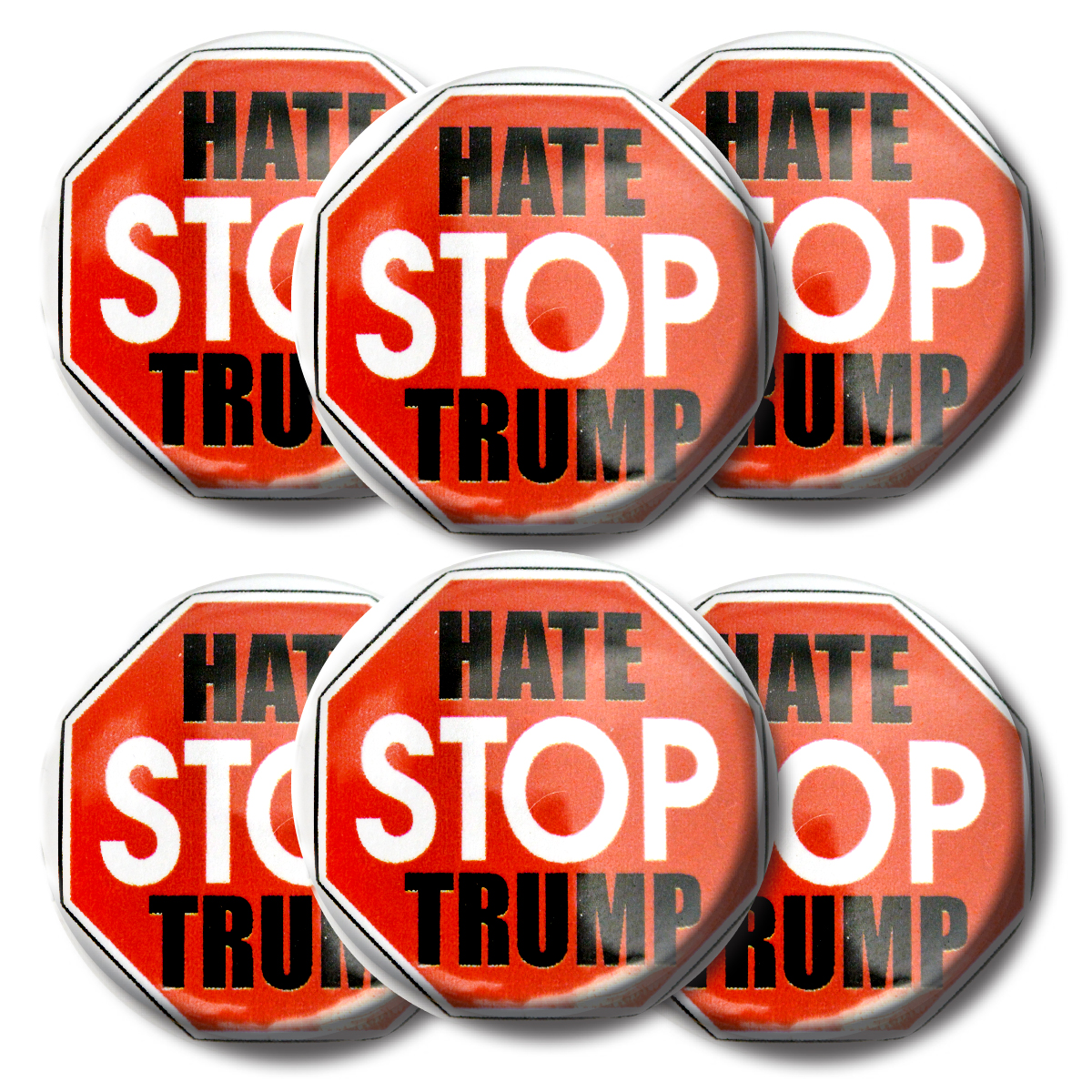 Set STOP HATE STOP TRUMP buttons (SET OF 6) 1.25” or 3.175cm pin back button