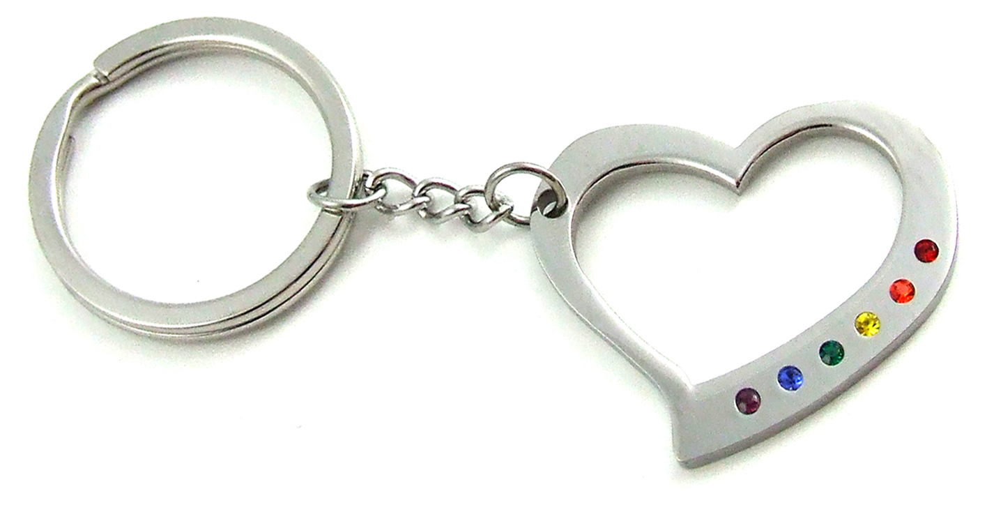 Stainless Steel Heart with Stones Key Ring