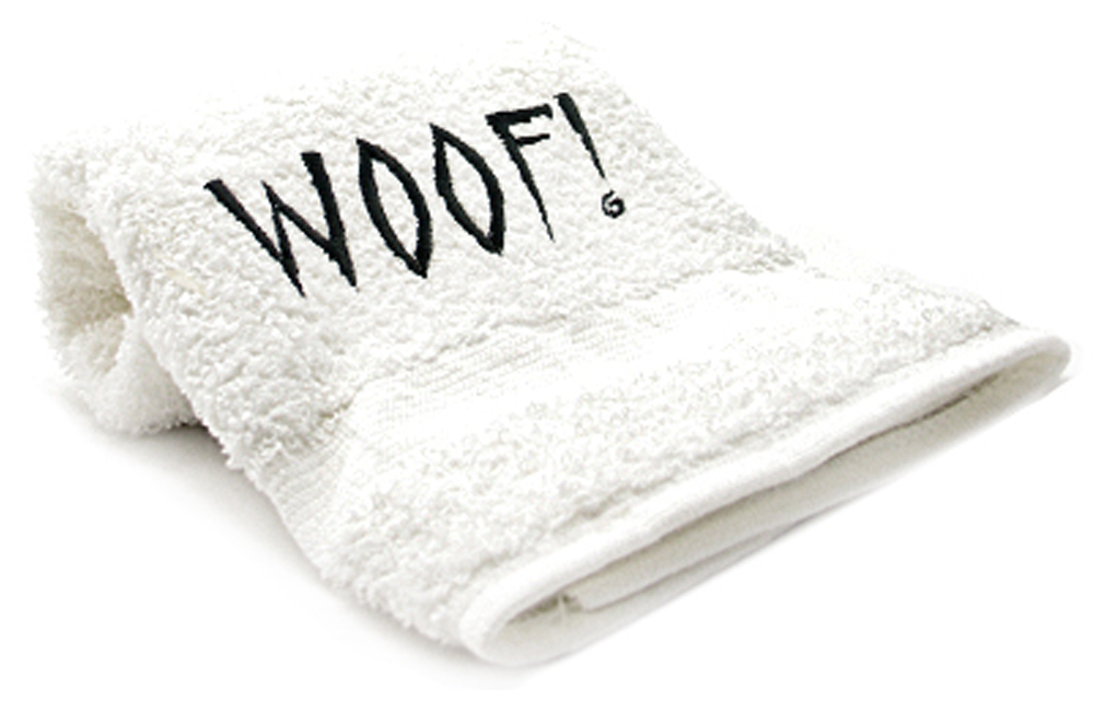 TWA Towels with Attitude – Woof! Embroidered Cum Towel
